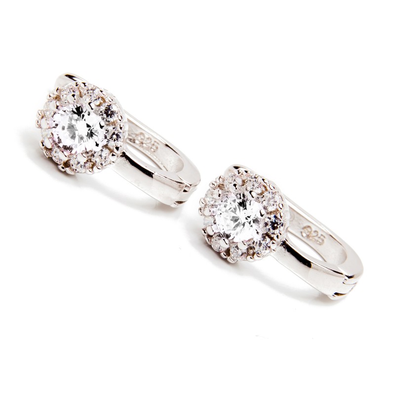 Srebrne kolczyki z białą cyrkonią. Wykonane z lśniącego srebra próba 925. Fabrycznie nowe.