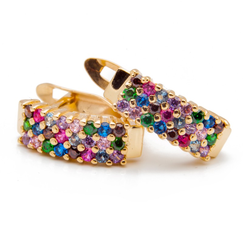Złote kolczyki 585 wypełnione kolorami cyrkonia