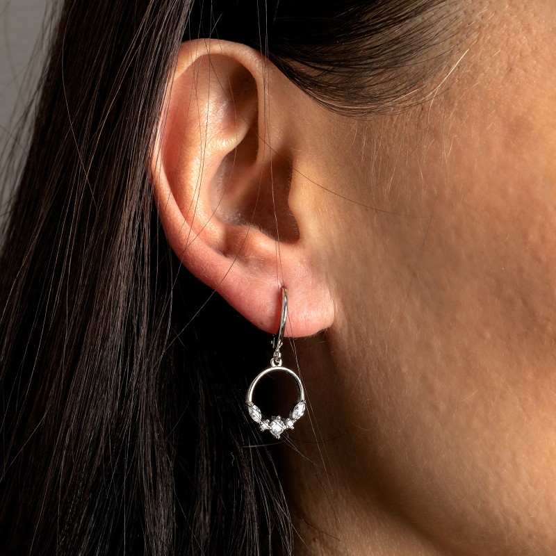 Srebrne kolczyki okręgi z pięcioma cyrkoniami