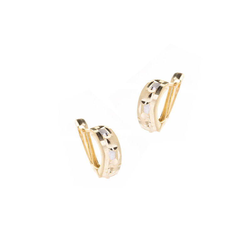 Złote kolczyki 585 belka błyszcząca z motywem diamentowanych kwadratów, angielskie zapięcie