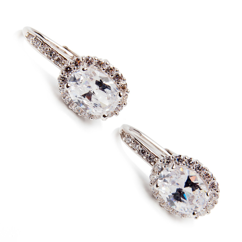 Srebrne kolczyki z białą cyrkonią. Wykonane z lśniącego srebra próba 925. Fabrycznie nowe.