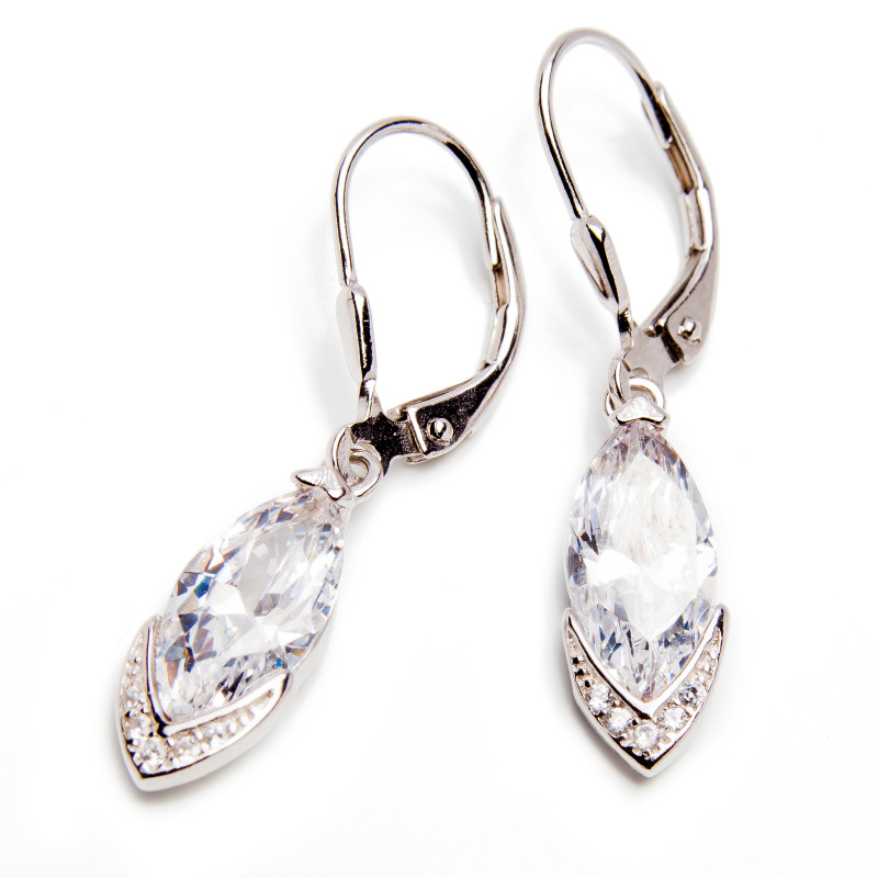 Srebrne kolczyki z białymi cyrkoniami. Wykonane z lśniącego srebra próba 925. Fabrycznie nowe.