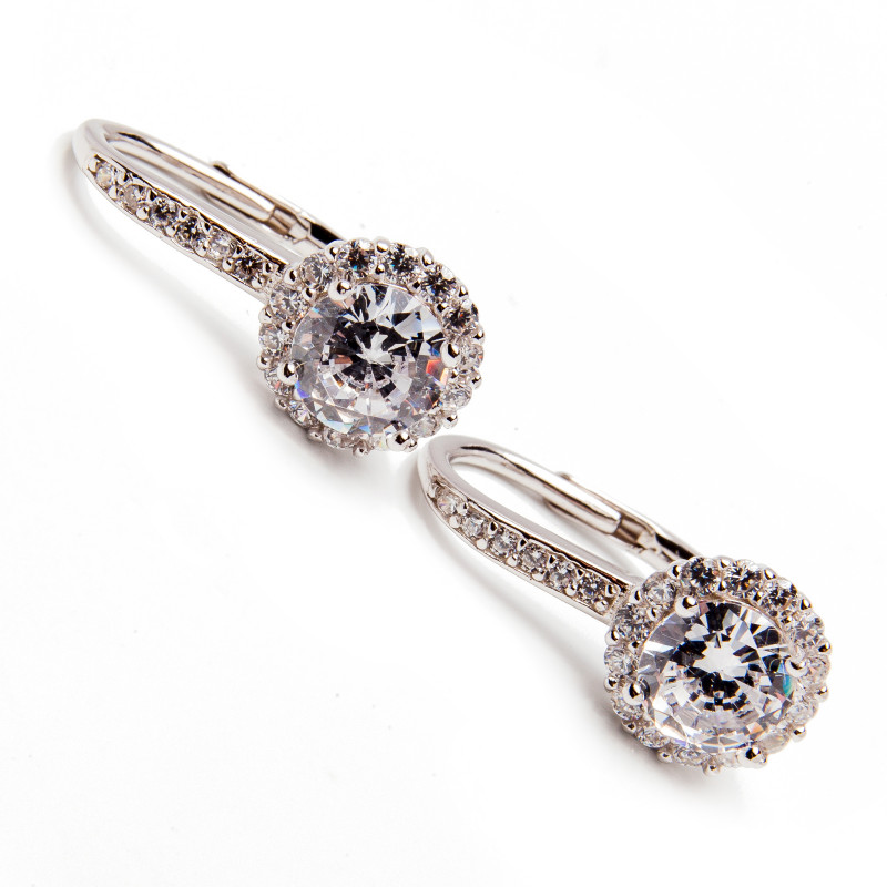 Srebrne kolczyki z białą cyrkonią. Wykonane z lśniącego srebra próba 925. Fabrycznie nowe.