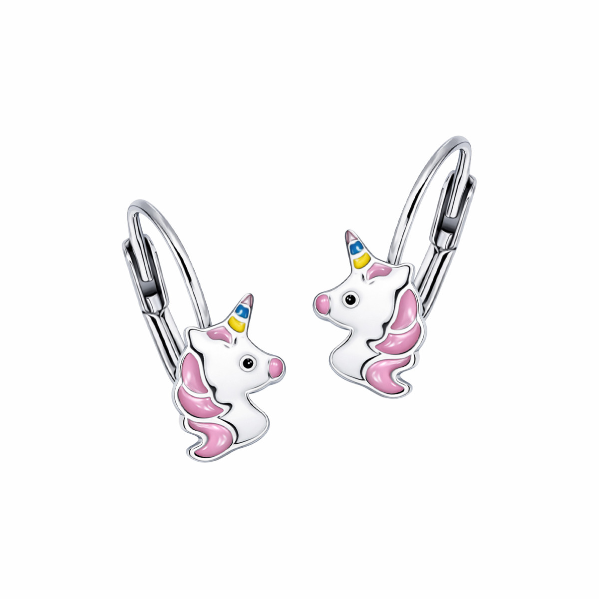 Urocze kolczyki wykonane ze srebra próby 925 w kształcie różowego jednorożca to idealna biżuteria dla małej księżniczki.