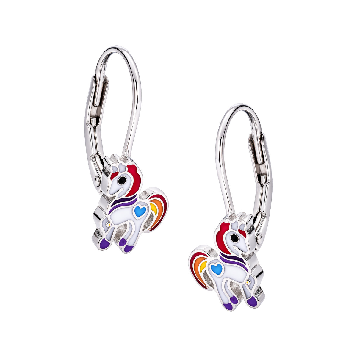 Urocze kolczyki wykonane ze srebra próby 925, zaprojektowane specjalnie dla małej damy, która kocha bajkowy świat i magię jednorożców. Motyw kucyka jednorożca w tęczowych kolorach przyciąga wzrok i dodaje stylizacji radosnego, dziewczęcego charakteru.