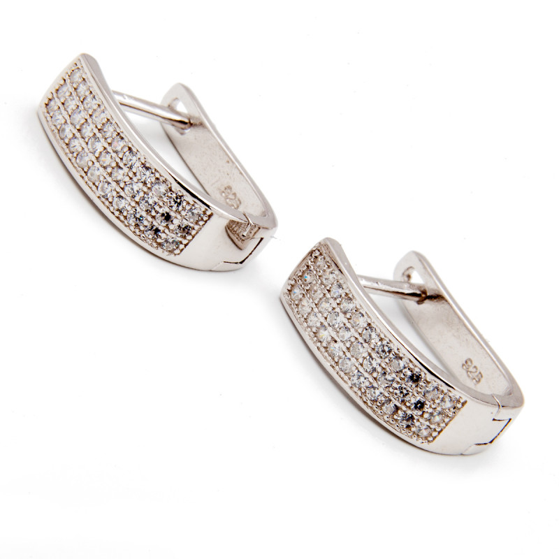 Srebrne kolczyki z białymi cyrkoniami. Wykonane z lśniącego srebra próba 925. Fabrycznie nowe.
