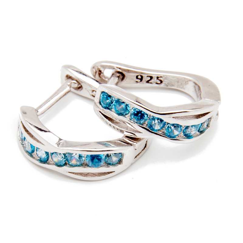 Srebrne kolczyki z błękitnymi cyrkoniami. Wykonane z lśniącego srebra próba 925. Fabrycznie nowe.