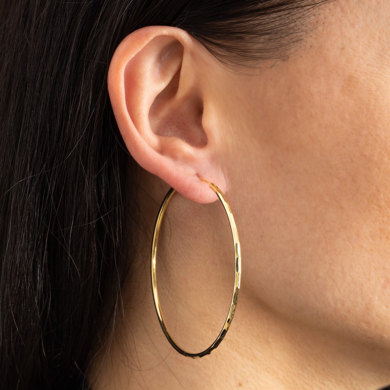 Pozłacane zdobione kolczyki koła o średnicy 59 mm to wyjątkowy i elegancki element biżuterii. Wykonane z najwyższej jakości srebra, pięknie mienią się w świetle, przyciągając uwagę swoim blaskiem. Klasyka wśród kolczyków. Te wyjątkowo efektowne kółka mogą być noszone jako samodzielna ozdoba, albo także w połączeniu z innymi elementami biżuterii, tworząc wyjątkowe, spersonalizowane zestawy. Idealnie sprawdzą się jako prezent dla osoby bliskiej, która ceni sobie luksus i elegancję.