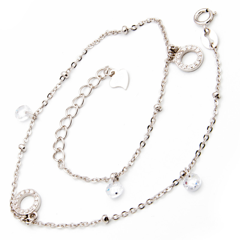 Srebrna bransoletka na nogę - cyrkoniowe koła
