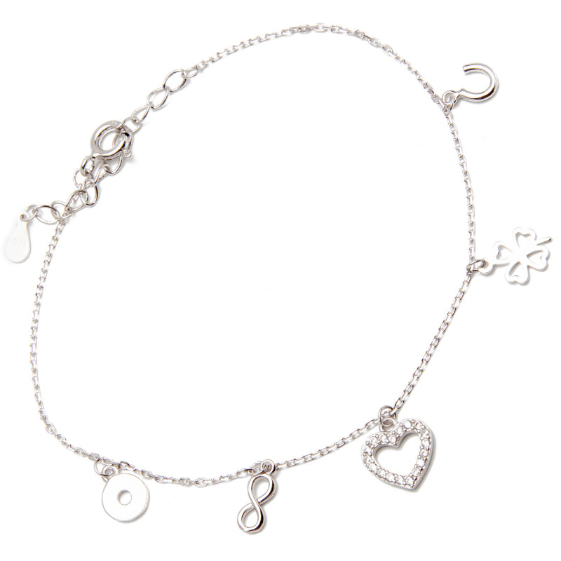 Srebrna bransoletka damska 925 serce koniczyna nieskończoność