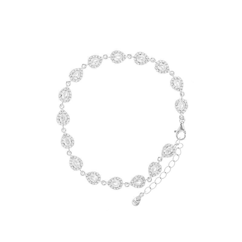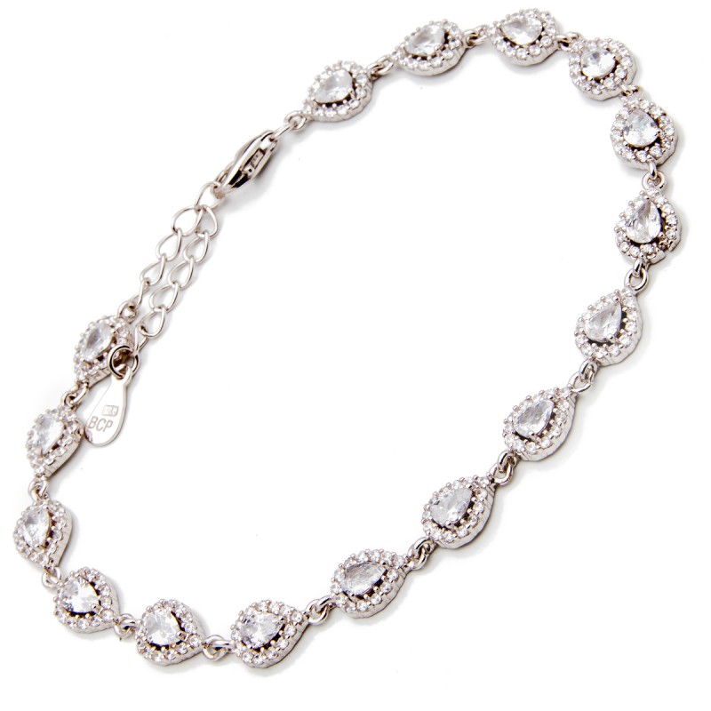 Srebrna bransoletka z cyrkoniowymi łezkami z błyszczącymi obwódkami . Wykonana z najwyższej jakości lśniącego srebra próby 925. Fabrycznie nowa.