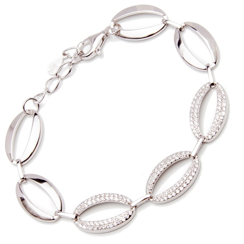 Srebrna bransoletka z przeplatanymi łezkami z cyrkoniami