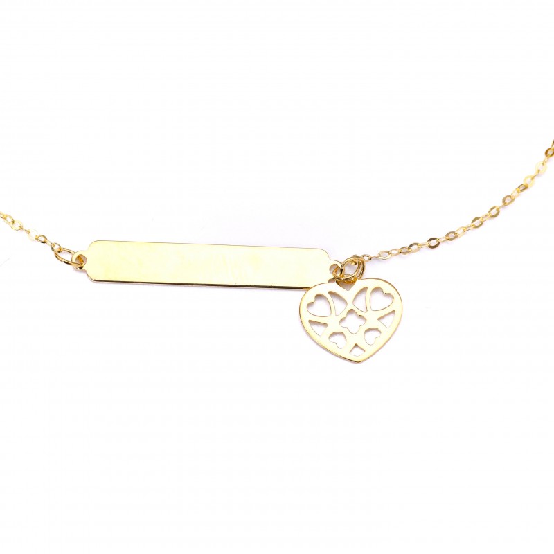 Złota bransoletka z blaszką i ażurowym serduszkiem