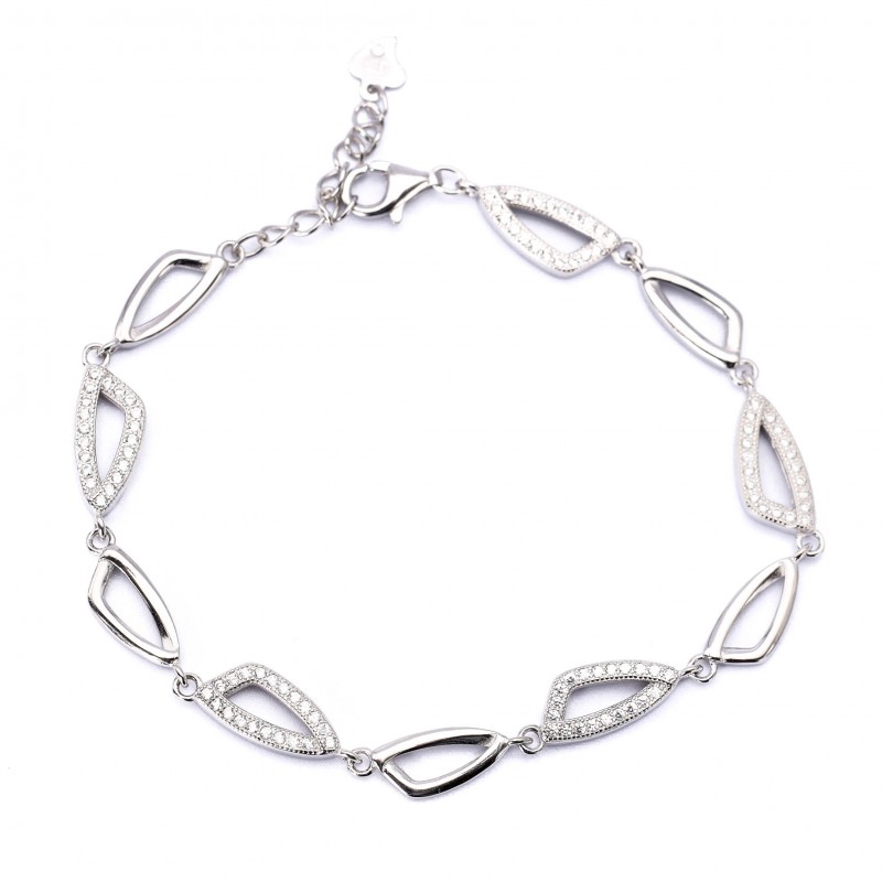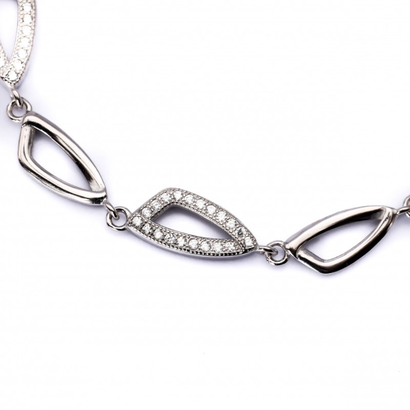 Srebrna bransoletka z błyszczącymi trójkątami wyłożonymi białymi cyrkoniami. Wykonana z najwyższej jakości lśniącego srebra próby 925. Fabrycznie nowa.