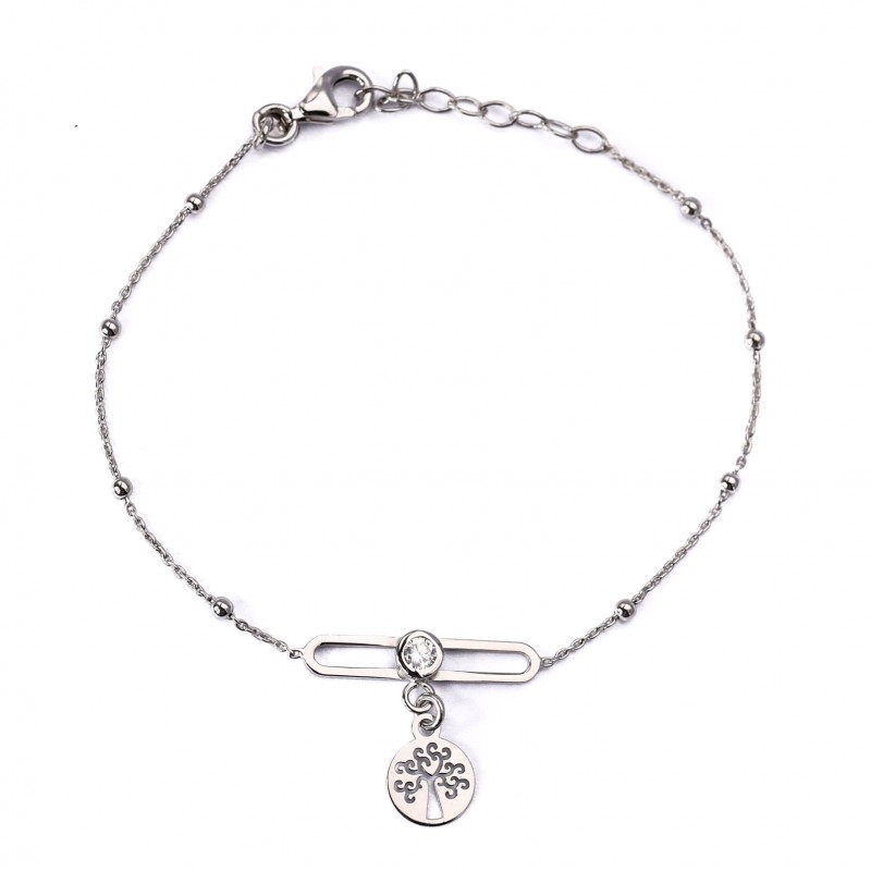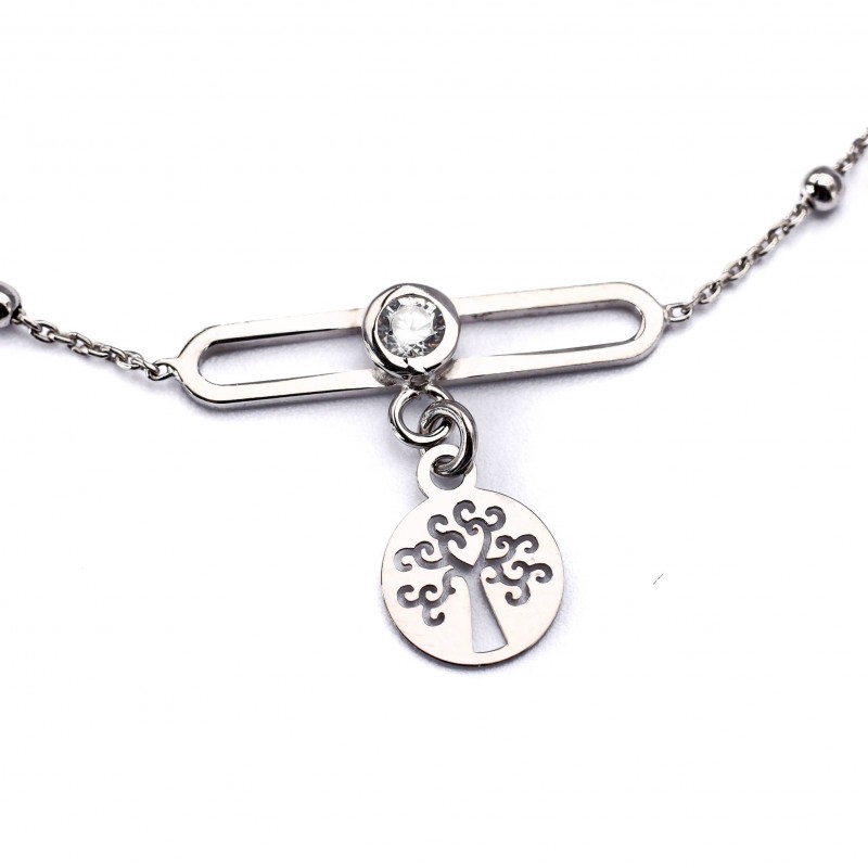 Srebrna bransoletka z łańcuszkiem typu ankier z kulkami i srebrną zawieszką z motywem drzewka szczęścia. Wykonana z najwyższej jakości lśniącego srebra próby 925. Fabrycznie nowa.