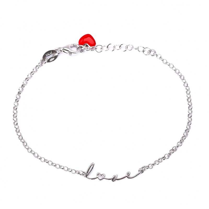 Srebrna bransoletka z napisem "Love" - kocham Cię i czerwonym serduszkiem. Wykonana z najwyższej jakości lśniącego srebra próby 925. Fabrycznie nowa.