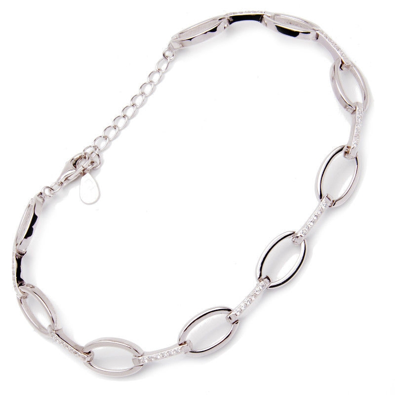 Srebrna bransoletka z cyrkoniami i motywem owalnych kółek
