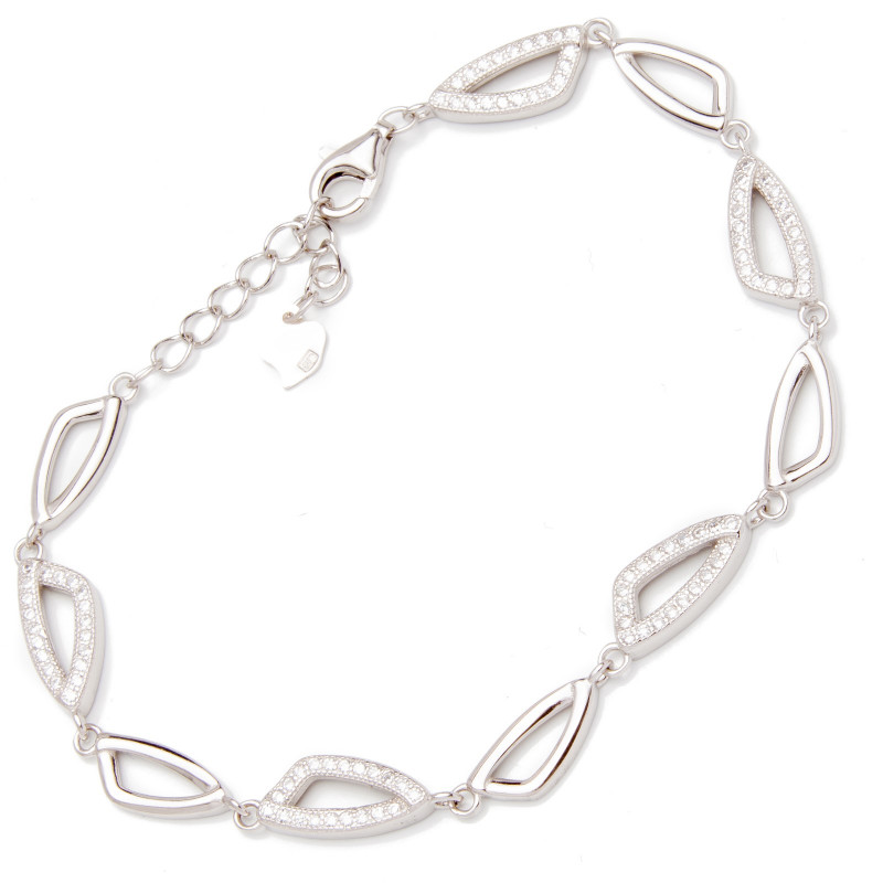 Srebrna bransoletka z motywem trójkątów zdobionych cyrkoniami