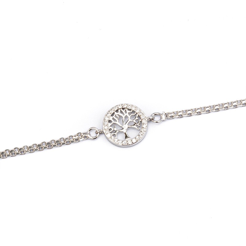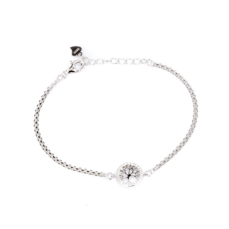 Srebrna bransoletka z drzewkiem szczęścia wypełnionym białymi cyrkoniami. Wykonana z najwyższej jakości srebra próby 925. Fabrycznie nowa.