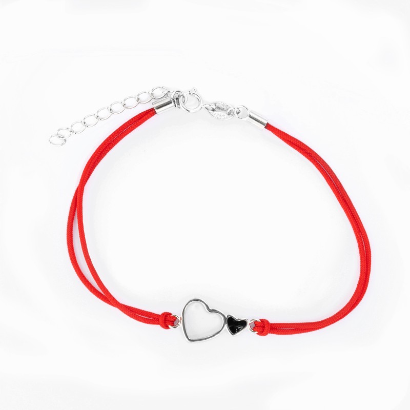 Motyw podwójnych serc symbolizuje miłość i związek pomiędzy dwiema osobami. Sznurek natomiast dodaje bransoletce lekkości i sprawia, że jest to idealny dodatek na co dzień.