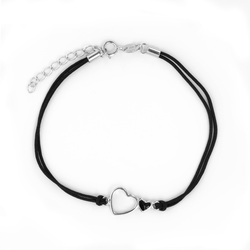 Srebrna bransoletka 925 Podwójne Serca Czarny Sznurek