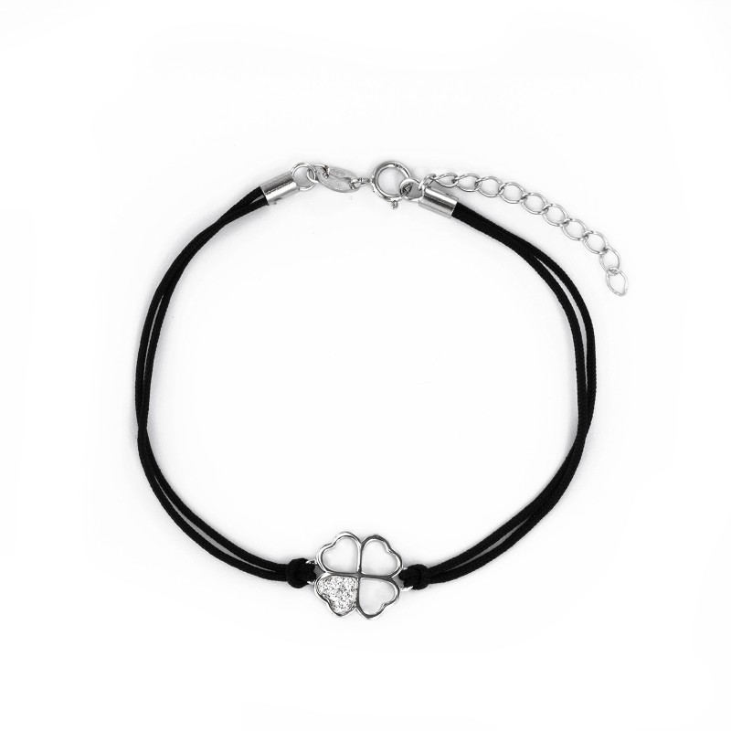 Srebrna bransoletka sznurkowa z motywem koniczynki szczęścia