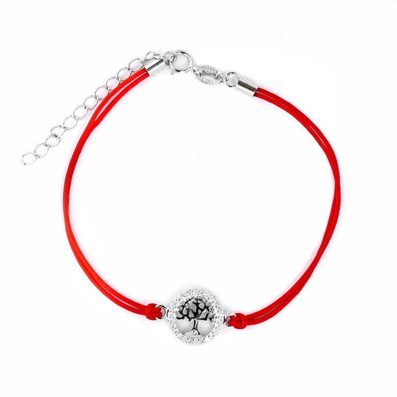 Srebrna bransoletka 925 Drzewko Szczęścia II Czerwony Sznurek