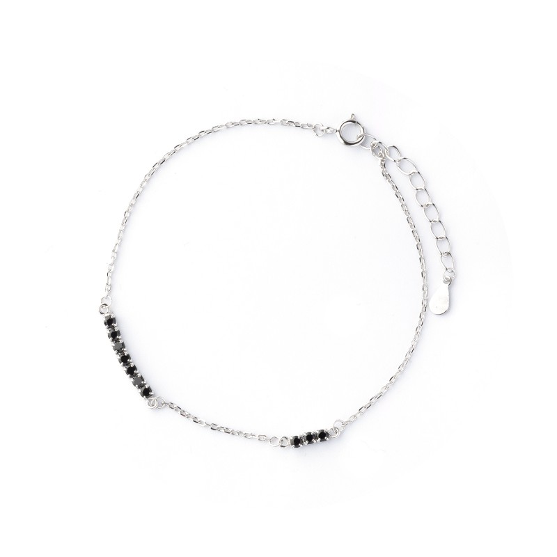 Srebrna bransoletka z delikatnymi czarnymi cyrkoniami