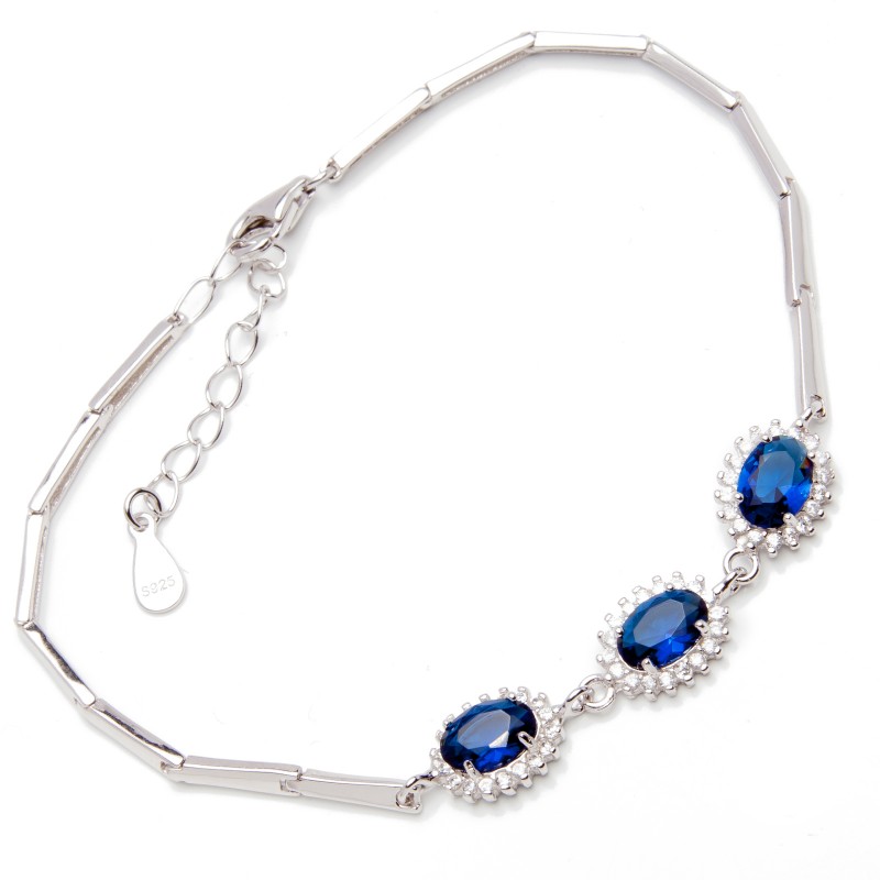 Srebrna Bransoletka Damska Niebieskie Cyrkonie