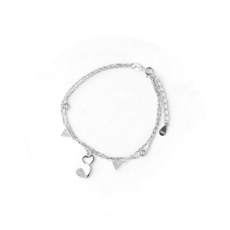 Srebrna Double Bransoletka 925 Trójkąty Serca