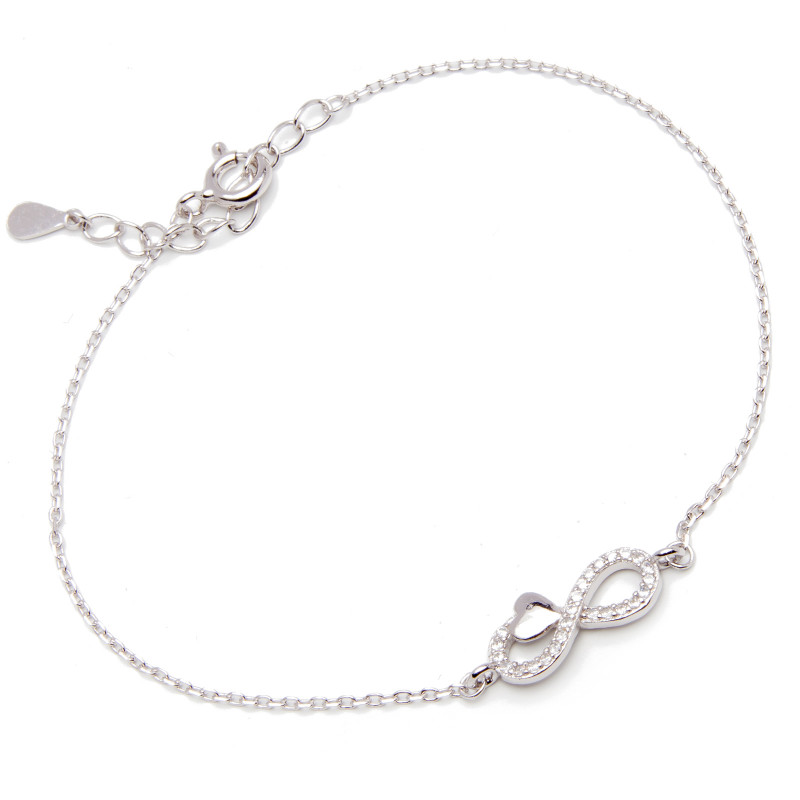 Srebrna bransoletka z symbolem nieskończoności i serca