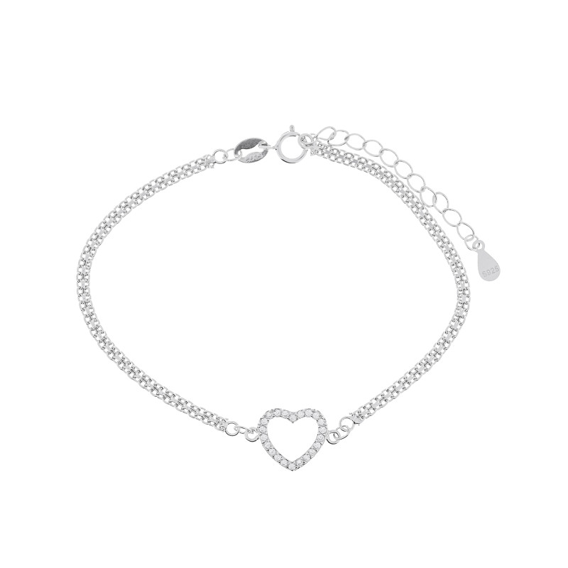 Bransoletka Srebrna 925 Jedno Serce otoczone Cyrkoniami