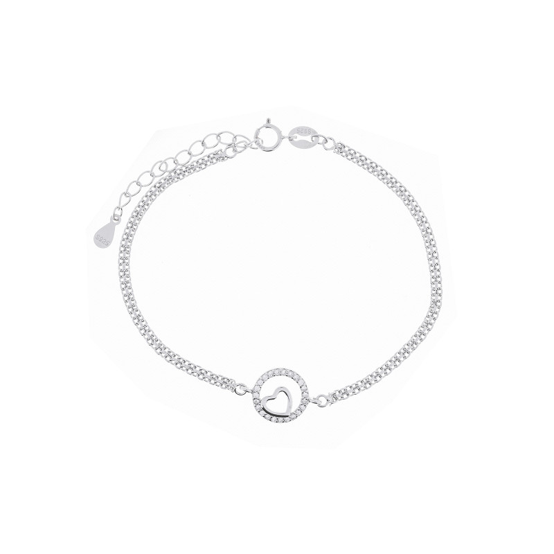 Bransoletka Srebrna 925 Serce w Kole otoczonym Cyrkoniami