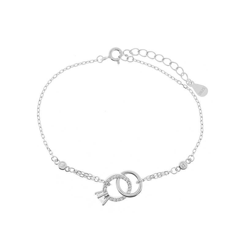 Srebrna 925 Bransoletka z Połączonymi Pierścieniami i Cyrkonią