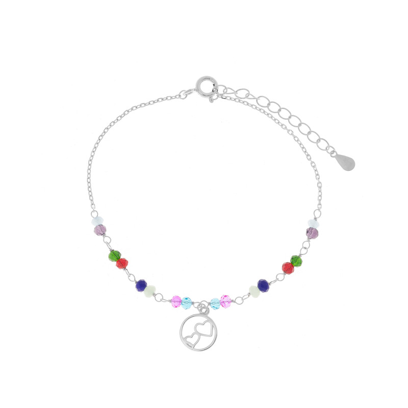 Srebrna bransoletka 925 Kolorowe Koraliki Serce