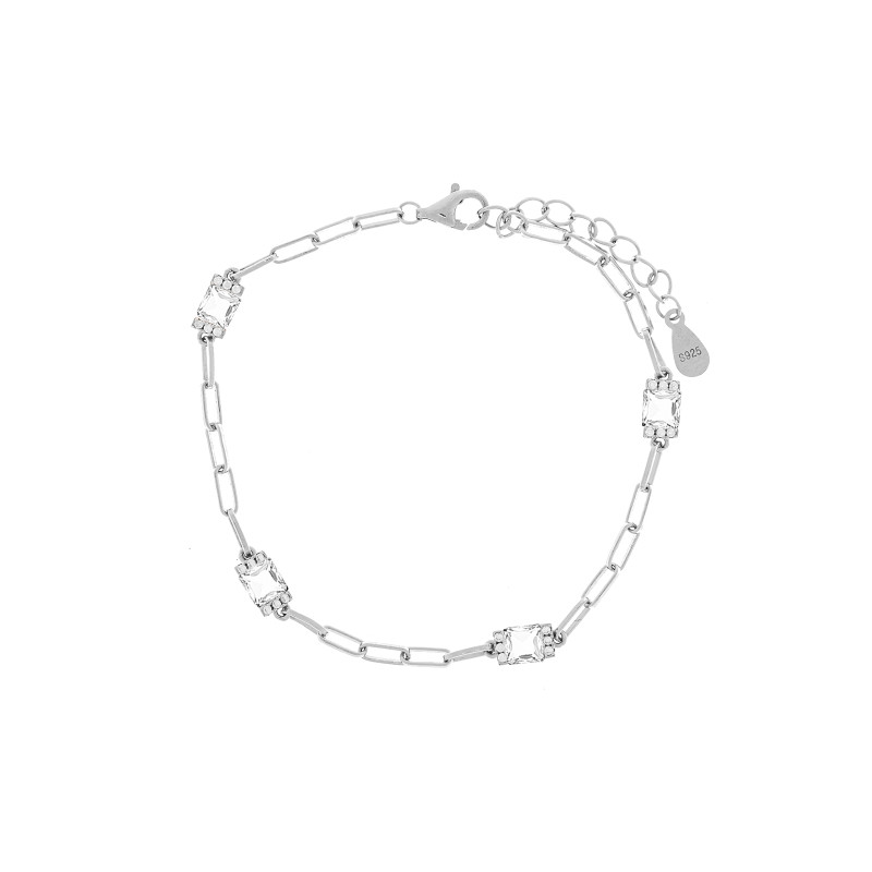 Srebrna bransoletka 925 Białe błyszczące prostokąty