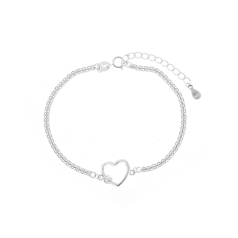 Delikatna bransoletka wykonana ze srebra próby 925 z ażurowym sercem – symbolem miłości, lekkości i elegancji. Na jego krawędzi osadzono jedną cyrkonię, która dodaje blasku i przyciąga spojrzenie. Minimalistyczny design sprawia, że bransoletka doskonale komponuje się z każdą stylizacją, podkreślając kobiecy charakter. Regulowane zapięcie gwarantuje idealne dopasowanie i wygodę noszenia. To piękna, symboliczna ozdoba – idealna na prezent lub jako osobisty talizman.