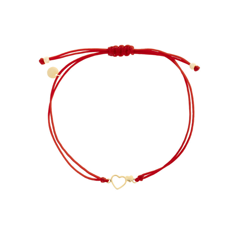 Bransoletka na czerwonym, regulowanym sznurku z pozłacanym motywem dwóch serc to subtelna i romantyczna ozdoba. Większe serce wykonane jest w formie ażurowej, co nadaje mu lekkości, a mniejsze – pełne – symbolizuje miłość i bliskość. Całość stworzona ze srebra próby 925, pokrytego złotem, zachwyca ciepłym blaskiem i eleganckim wykończeniem. Intensywny czerwony sznurek dodaje energii i podkreśla symbolikę uczuć. Regulowana długość zapewnia idealne dopasowanie do nadgarstka. To idealny wybór na prezent dla bliskiej osoby lub jako talizman przypominający o ważnych relacjach.
