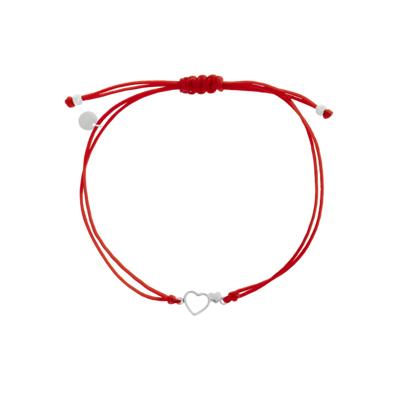 Bransoletka na czerwonym, regulowanym sznurku z motywem dwóch srebrnych serc to elegancki i pełen symboliki dodatek. Większe serce ma ażurową formę, nadającą lekkości, natomiast mniejsze – pełne – symbolizuje miłość, bliskość i trwałe więzi. Całość wykonana jest ze srebra próby 925, które zachwyca subtelnym połyskiem i ponadczasowym wyglądem. Intensywny czerwony sznurek podkreśla energetyczny charakter biżuterii i nawiązuje do pasji oraz ochronnej symboliki. Regulowane zapięcie pozwala dopasować bransoletkę do każdego nadgarstka, zapewniając komfort noszenia. To doskonały wybór na prezent dla ukochanej osoby lub jako osobisty talizman.
