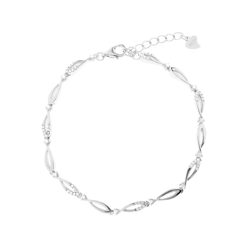 Bransoletka wykonana jest w całości ze srebra próby 925, co zapewnia trwałość i elegancję. Każde ogniwo ma kształt delikatnej rybki, a część powierzchni zdobią starannie osadzone cyrkonie, które subtelnie odbijają światło. Ten unikalny motyw nadaje biżuterii nowoczesny i artystyczny charakter. Lekka konstrukcja sprawia, że bransoletka jest komfortowa w noszeniu, idealna zarówno na co dzień, jak i na wyjątkowe okazje. Geometryczny, a zarazem organiczny wzór przyciąga wzrok i podkreśla indywidualny styl. To połączenie elegancji, kreatywności i delikatnego blasku, które dodaje szyku każdej stylizacji.