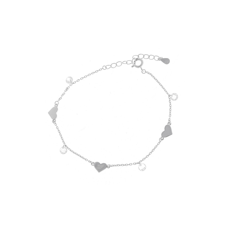 Romantyczny akcent w eleganckiej formie – ta delikatna bransoletka ze srebra próby 925 ozdobiona została uroczymi, wiszącymi serduszkami w towarzystwie cyrkonii.
