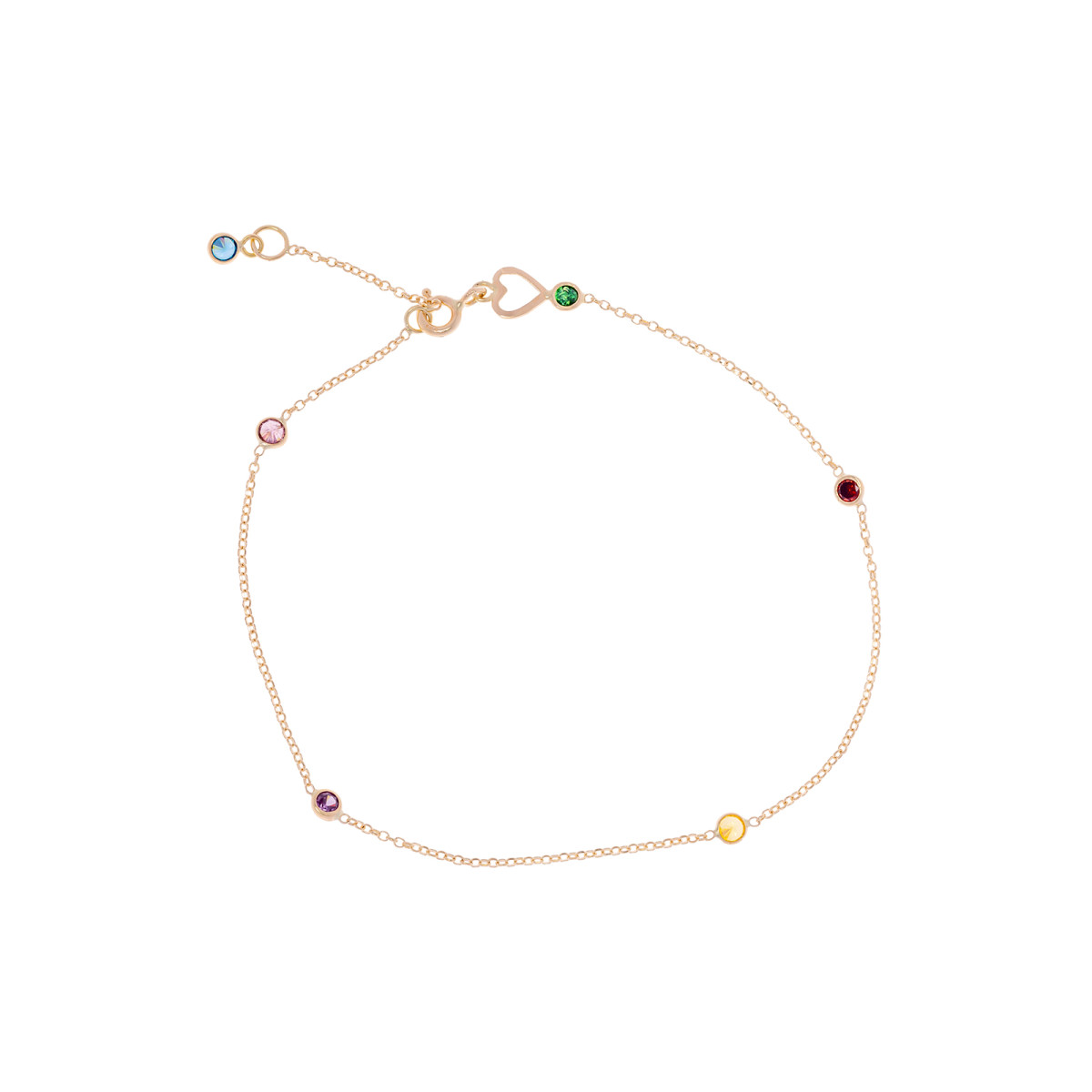 Złota bransoletka próby 585 o subtelnej, minimalistycznej formie zachwyca delikatnym łańcuszkiem ozdobionym drobnymi, kolorowymi kamieniami. Na całej długości rozmieszczone są okrągłe oczka w różnych barwach, które pięknie odbijają światło i nadają biżuterii lekkości. Całość dopełnia zawieszka w kształcie serca przy zapięciu, dodająca romantycznego charakteru. Regulowane zapięcie z dodatkową przedłużką umożliwia idealne dopasowanie do nadgarstka. To wyjątkowy, kobiecy dodatek, który wnosi subtelny kolor i blask do każdej stylizacji.