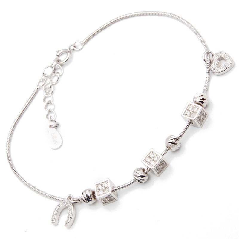 Srebrna bransoletka 925 cyrkoniowe kostki podkowa