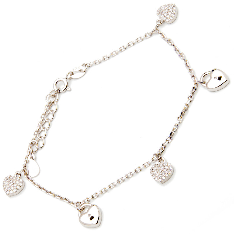 Srebrna bransoletka o splocie typu ankier z zawieszkami z motywem serc. Wykonana z najwyższej jakości lśniącego srebra próby 925. Fabrycznie nowa.