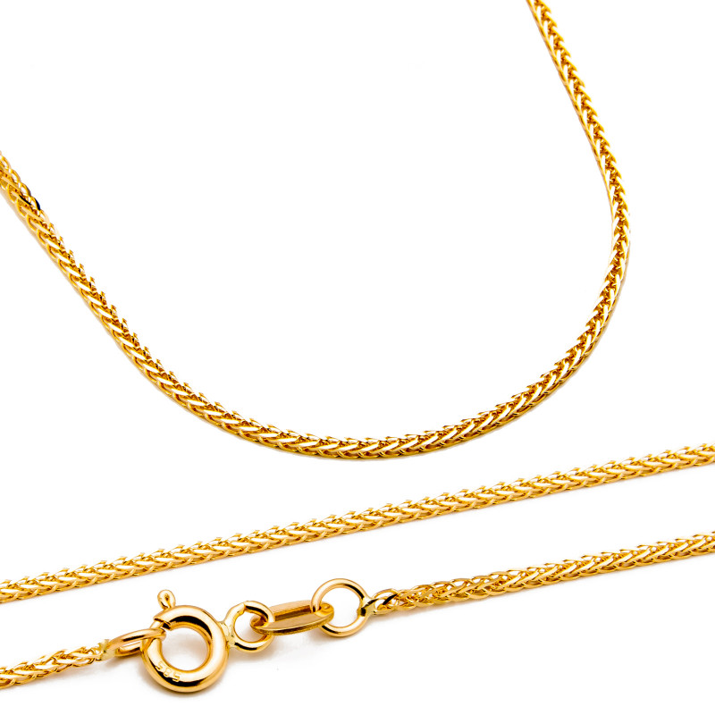 Złoty łańcuszek ze splotem typu lisi ogon. Wykonany z najwyższej jakości lśniącego złota próby 585. Fabrycznie nowy.