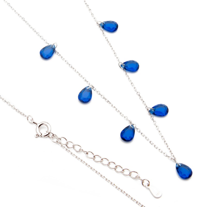 Srebrny naszyjnik z granatowymi cyrkoniami. Wykonany z najwyższej jakości lśniącego srebra próby 925. Fabrycznie nowy.