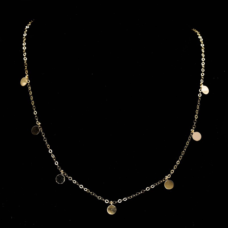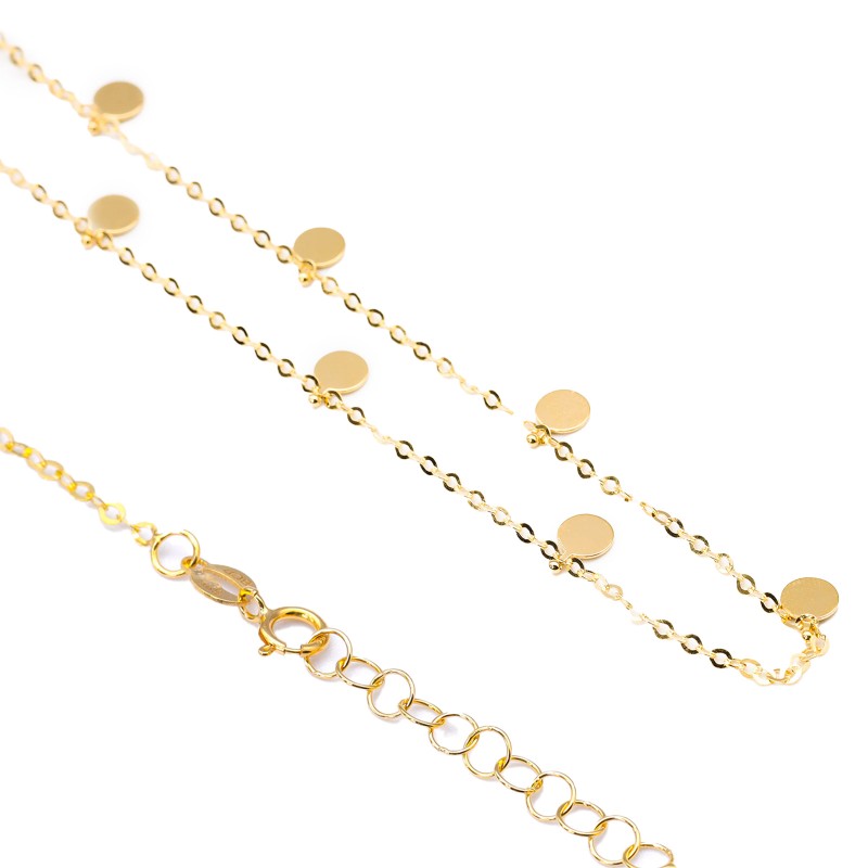 Złoty naszyjnik o klasycznym splocie typu ankier z kołami. Wykonany z najwyższej jakości lśniącego złota próby 585. Fabrycznie nowy.
