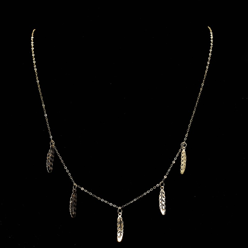 Złoty naszyjnik ze złotymi zawieszkami w kształcie listków