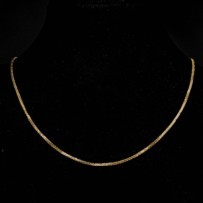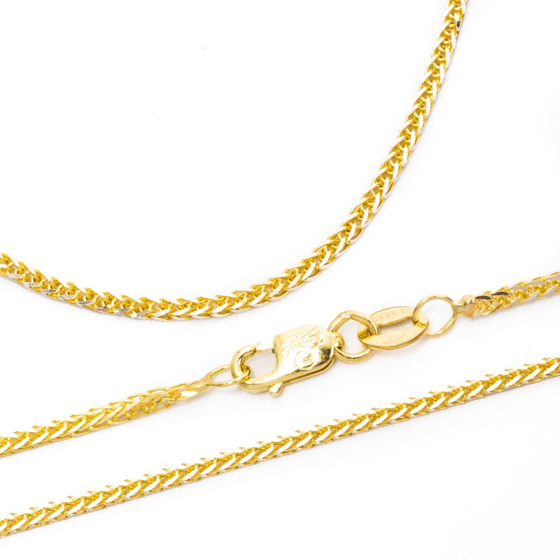 Złoty łańcuszek ze splotem typu lisi ogon. Wykonany z najwyższej jakości lśniącego złota próby 585. Fabrycznie nowy.