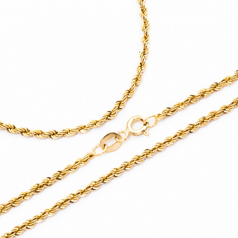 Złoty łańcuszek ze splotem typu długi Korda. Wykonany z najwyższej jakości lśniącego złota próby 585. Fabrycznie nowy.